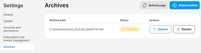 ✍️Detaching an archive only removes it from the list of archives. The archive file remains stored in its original location. You can choose to keep it or manually delete it.