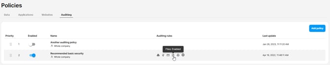- Go to Policies > Auditing and click Add policy.