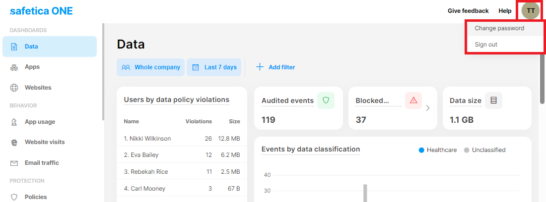 ❗Users signed in via an AD security group cannot change their password in Safetica console.