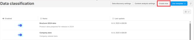 - Go to the Data classification section and click Create new (or select an existing classification to edit it).