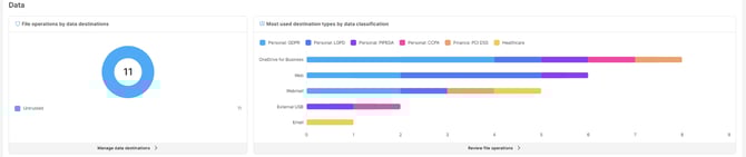 - Most used destination types by data classification: Analyze the movement of sensitive files. Examine what types of sensitive data are moved where.