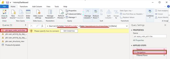 - Click Navigation in the Applied steps menu on the right.