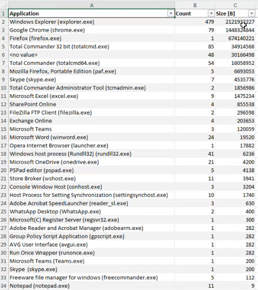 - all DASHBOARDS tables (Data, Apps, Websites, External devices, Data discovery)