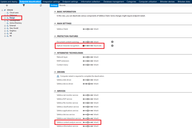- Select the device or group for whom you want to activate/deactivate OCR in the user tree.