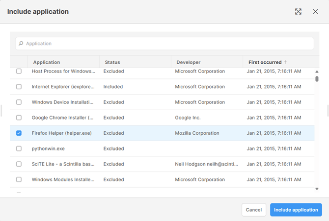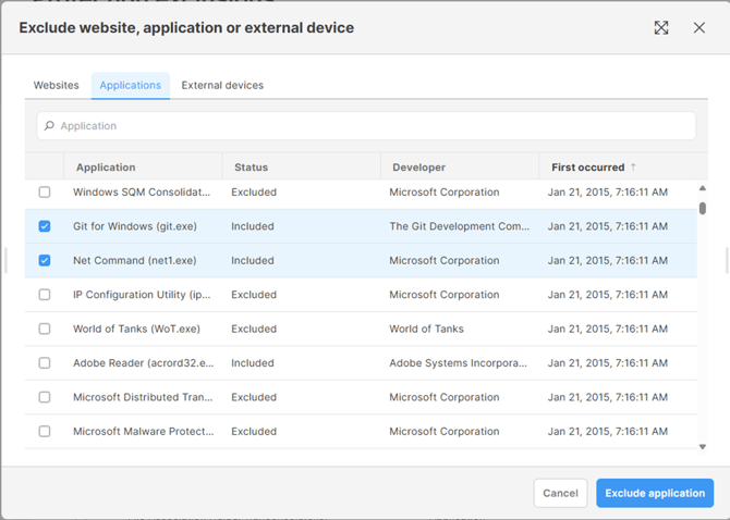 Examples of included apps: Apps that are not in Safetica’s default list or previously excluded apps where issues have been resolved.