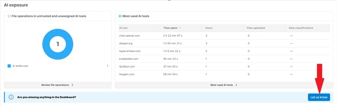 - Dashboard feedback: Share your thoughts about the new Dashboard directly with us via our feedback form. You can find the form at the very bottom of the Dashboard section - just click the Let us know button.