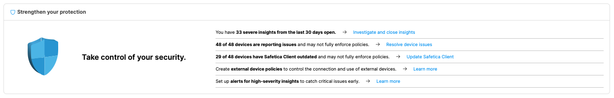 New recommendations on the Dashboard: A brand-new recommendations section has been added to the Dashboard, helping you strengthen your organization’s protection with clear, actionable guidance.