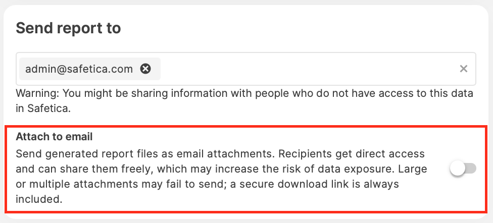 Attach report to email: You can now send reports directly as email attachments from the report detail page using the “Attach to email” option. Just keep in mind — this might increase the risk of sensitive data exposure.