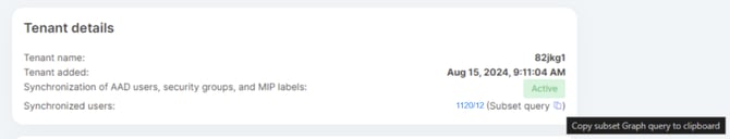 - Subset query: If you used a Microsoft Graph query to define the subset of your tenant users that should be protected by Safetica, you can now copy the query in your tenant detail.