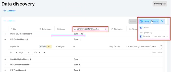 - Records have a Classification tab in the detail for files that match a data classification.