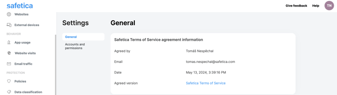 - Safetica Terms of Service now show up in a pop-up dialog for the first admin that opens Safetica console.