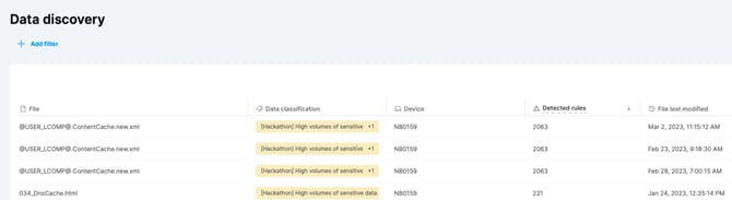 Partially matched classifications: Show up in situations when a file didn’t match a classification rule completely or a threshold wasn’t reached. They can reveal potentially sensitive information and provide useful insights for improving your existing data classifications, such as adding new rules to improve accuracy.