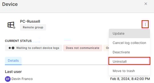 How to uninstall Safetica Client from specific devices