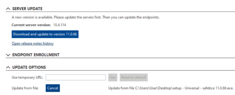 - After you update the new Safetica to a newer version: when you open the Safetica Maintenance Console, you will be automatically offered an update to a newer version.