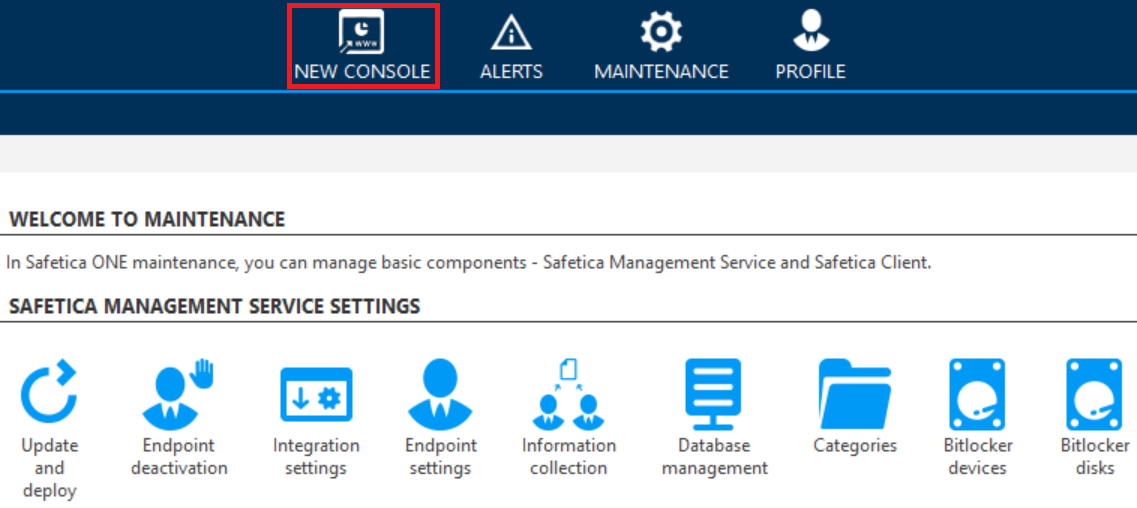 9. Afterwards, click the New console icon, and you will be redirected to the web-based Safetica console.